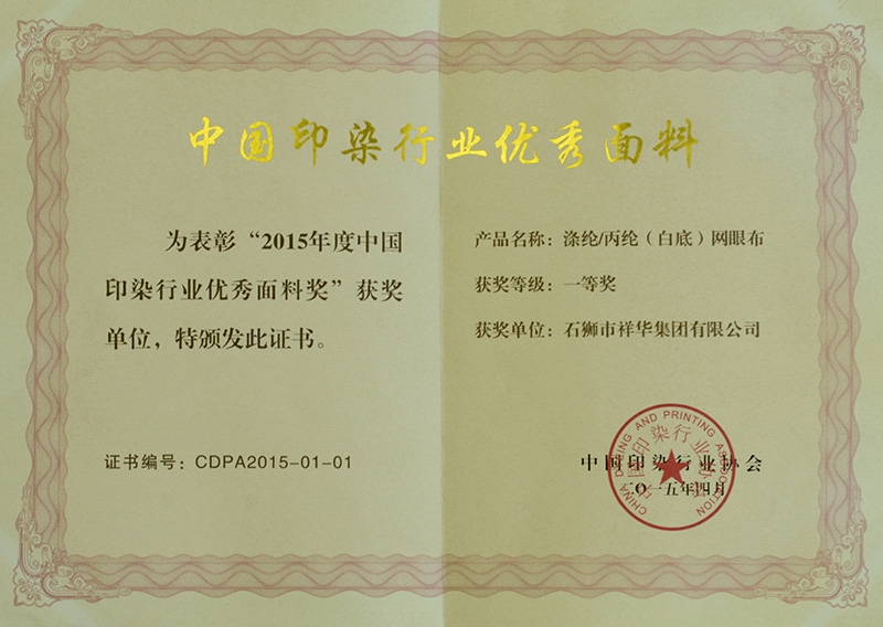 印染行業(yè)優(yōu)秀面料獎一等獎